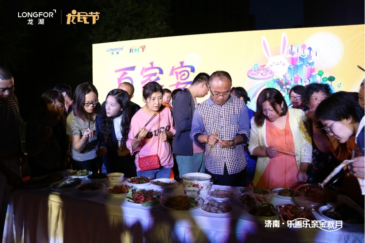 秋满月盈日,人间团圆时。中秋佳节,阖家赏月,团坐聚饮,是一直以来欢庆中秋节的传统习俗。9月22日,为丰富社区居民文化生活,共建和谐、幸福社区,济南龙湖·名景台社区百家宴活动热闹开席,近200位居民相聚在龙湖·名景台社区小广场,带着精心准备的一道道拿手菜,摆成桌桌百家宴,展开了一场其乐融融,传递温暖的中秋喜乐活动。
