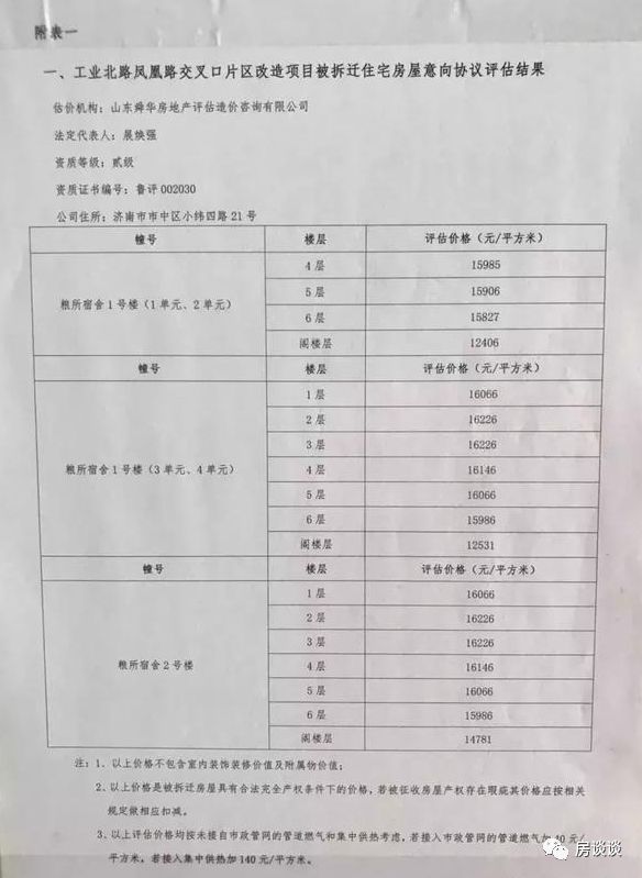 此外,《工业北路凤凰路交叉口片区改造项目被拆迁住宅房屋价格评估说明》也已经公布。文件显示,评估范围为工业北路凤凰路交叉口片区改造项目拆迁范围内粮所宿舍楼及其附属设施;估价目的为为房屋拆迁部门与被拆迁人确定被拆迁房屋价值的补偿提供依据,评估被拆迁房屋的价值。