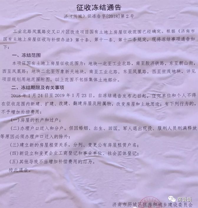 据悉,该区域内的征收冻结通告早在2018年1月份就已经发布。