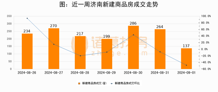 【济南成交日报】09月01日新房成交137套;涨价房源12套