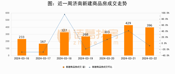 【济南成交日报】03月22日新房成交396套;涨价房源34套