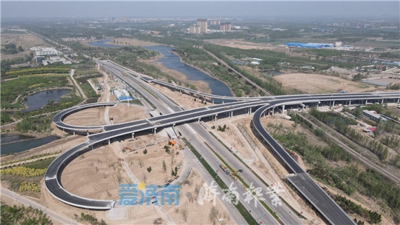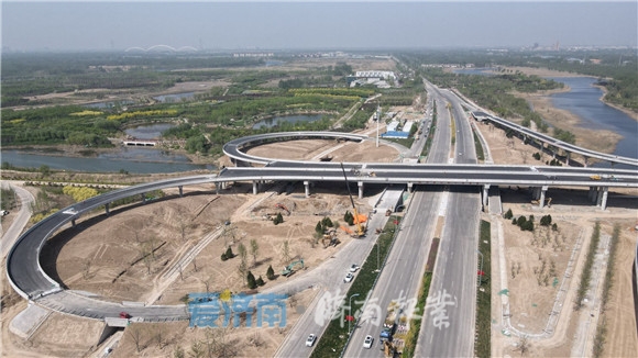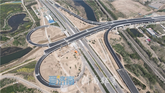 4月11日,济南新旧动能转换起步区较大互通立交桥桥面已铺设沥青,从空中俯瞰,宛若一朵静待绽放的“花朵”镶嵌在济南黄河北岸。目前除铺设沥青路面外,桥下G309沿线的护栏及绿化施工也在紧张进行中,距离满足通车条件越来越近了。