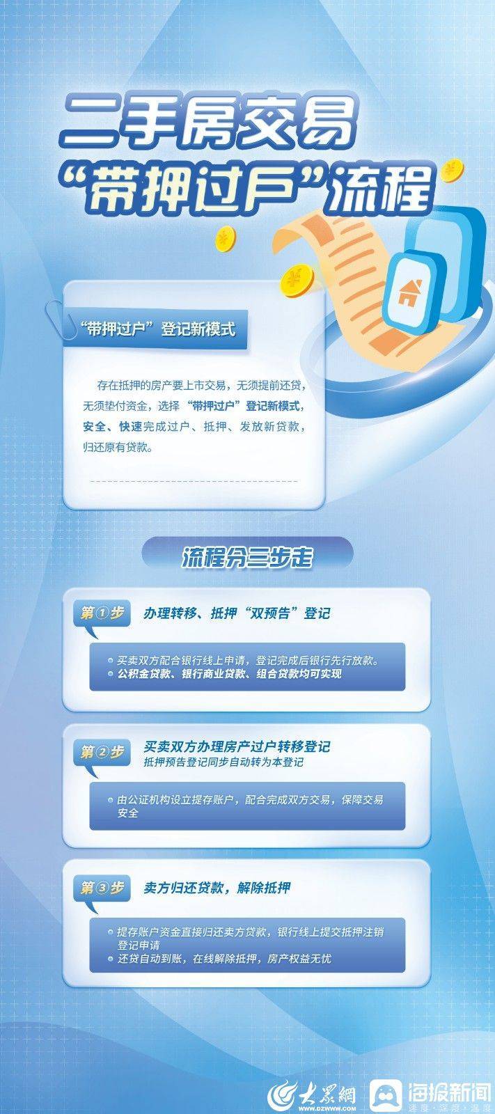 无须提前还贷,无须垫付资金,二手房“带押过户”在济南正式落地。8月17日,记者在济南市委市政府召开的新闻发布会上了解到,济南市自然资源和规划局协同济南住房公积金中心和银行、公证等机构,创新推出二手房“带押过户”登记新模式,对于存在抵押的房产要上市交易的,实现了不用先归还原来的房贷就可以完成过户、抵押、发放新的贷款,提高交易质量,降低交易成本。