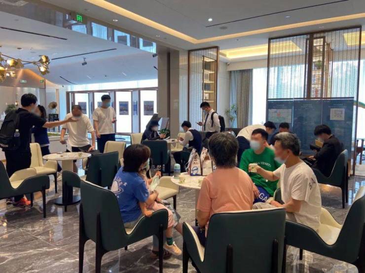 售楼处采取预约制,客户要扫描场所码、显示72小时内核酸阴性报告方可入内。三十多位工作人员每天测核酸,采取AB班轮换。