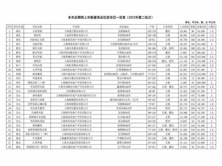 “和今年排名前列批集中供应的体量相比,第二批的供应量有比较显著的增长。从楼盘个数来说,第二批增长了近40%。这一批次中,宝山在各个区域中的供应量较大,将有9个盘入市。所以这次对于有意向置业市区、或者宝山的购房者会是一个利好,选择面增加了,认购的人数会有所分流,增加了摇到的几率。”