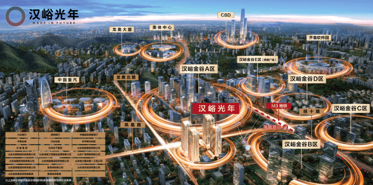 干佛山富人区、中央商务区、奥体中心、汉峪金谷……