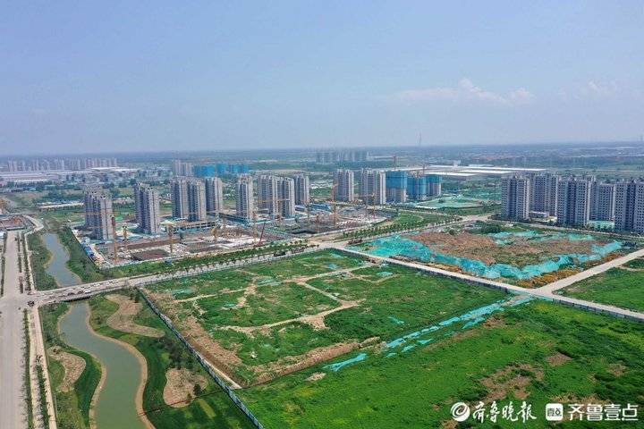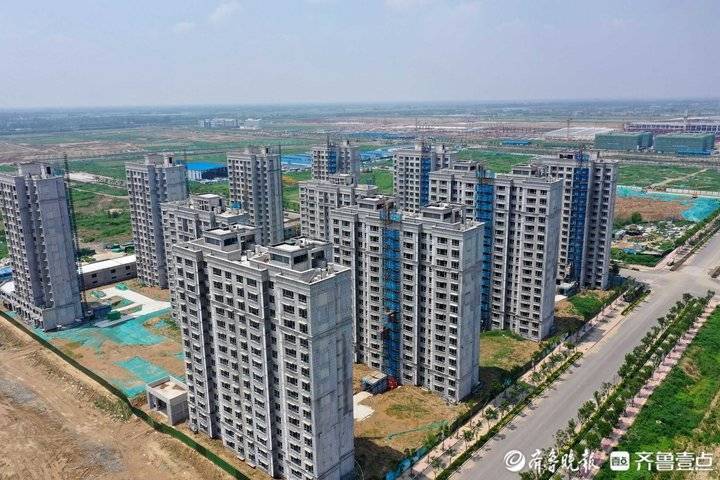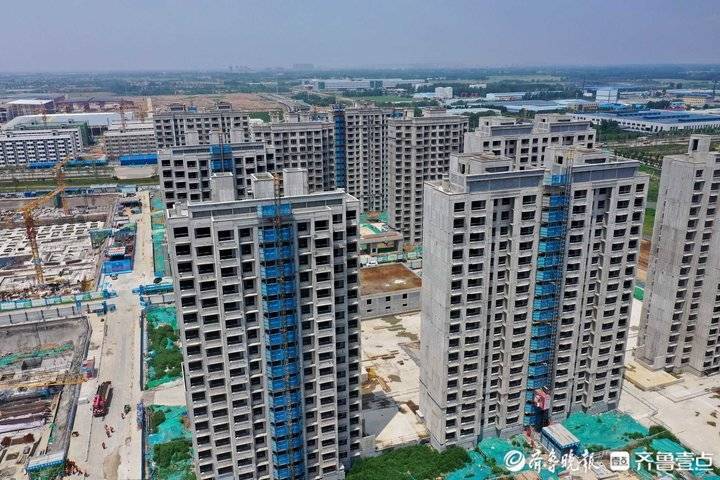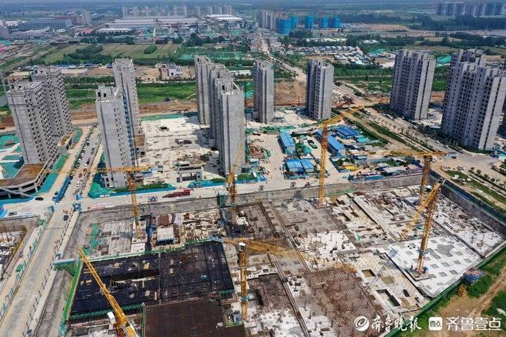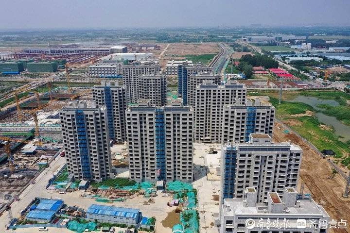 7月盛夏,济南起步区崔寨居民安置二区,数十栋高层居民楼已经封顶。一批新的居民楼和配套服务设施正在快速崛起,现场场面宏大。