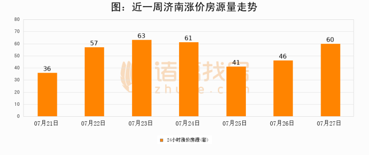 根据诸葛找房数据显示,济南24小时涨价房源量为60套,较07月26日增加14套,环比上涨30.4%。与此同时,涨价房源占比小幅扩大,业主信心有所提升。
