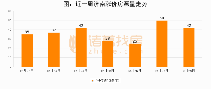 根据诸葛找房数据显示,济南24小时涨价房源量为42套,较12月27日减少8套,环比下降16%。与此同时,涨价房源占比小幅回落,对于购房者来说是一个入市窗口期,购房者可抓住时机入市。
