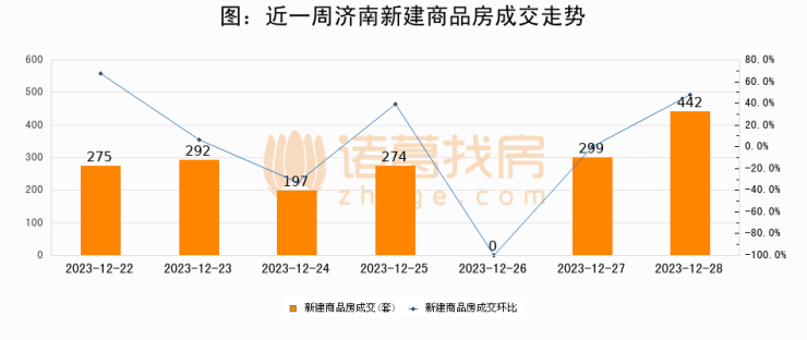 【济南成交日报】12月28日新房成交442套;涨价房源42套