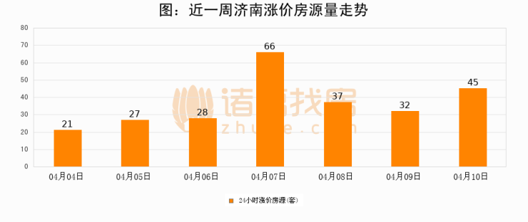 根据诸葛找房数据显示,济南24小时涨价房源量为45套,较04月09日增加13套,环比上涨40.6%。与此同时,涨价房源占比小幅扩大,业主信心有所提升。