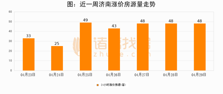 根据诸葛找房数据显示,济南24小时涨价房源量为48套,较04月28日持平。