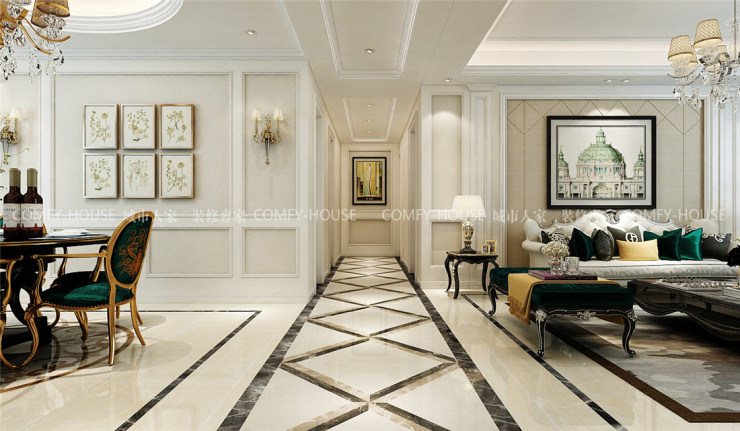 设计说明:欧洲文化丰富的艺术底蕴,开放、创新的设计思想及其尊贵的姿容,一直以来颇受众人喜爱与追求。简欧风格从简单到繁杂、从整体到局部,精雕细琢,镶花刻 金都给人一丝不苟的印象。一方面保留了材质、色彩的大致风格,仍然可以很强烈地感受传统的历史痕迹与浑厚的 文化底蕴,同时又摒弃了过于复杂的肌理和装饰,简化了 线条。