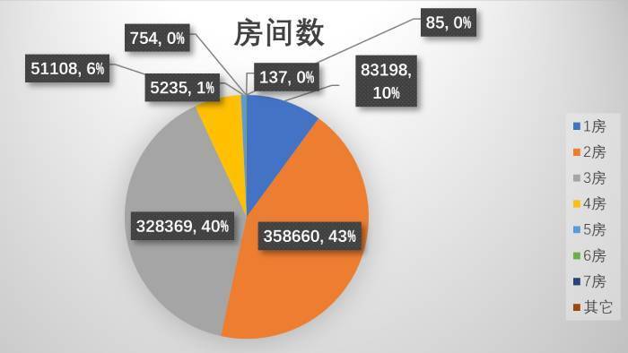 同等面积条件下,居民家庭更偏好卧室房间较多的户型。从户型分布看,2房和3房的户型交易样本占比分别为43%和40%,占了样本的绝大多数。另外1房占10%,4房占6%。超过4房的户型数量急剧下降,较为稀少。同样建筑面积条件下,卧室每增加一个,居民家庭房价支付意愿增加5.16%。