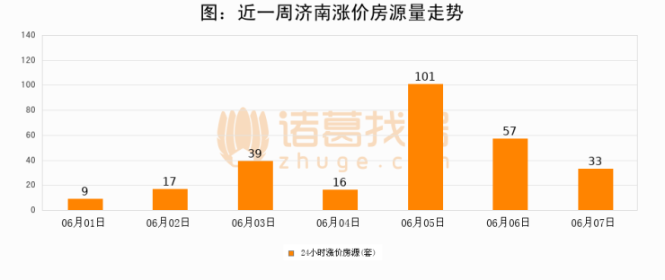 根据诸葛找房数据显示,济南24小时涨价房源量为33套,较06月06日减少24套,环比下降42.1%。与此同时,涨价房源占比小幅回落,对于购房者来说是一个入市窗口期,购房者可抓住时机入市。