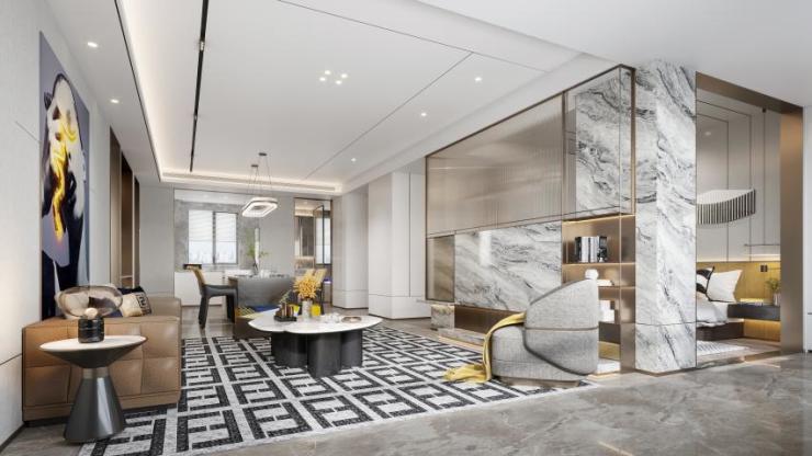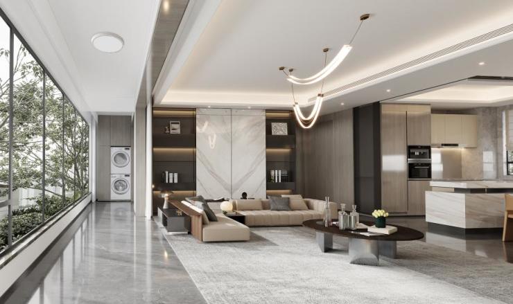 约43㎡竖式厅堂,除了餐客厅,品茗、儿童活动等功能皆可一齐安放,