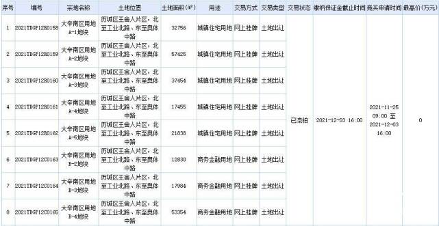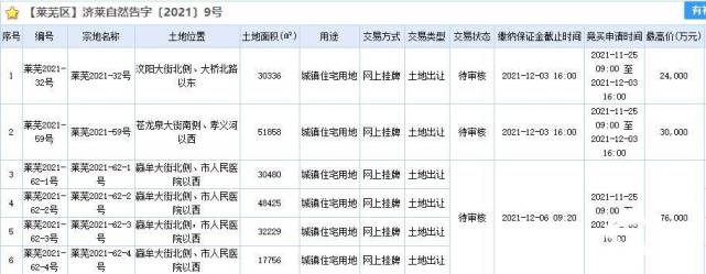 莱芜区6宗城镇住宅用地全部以底价成交。