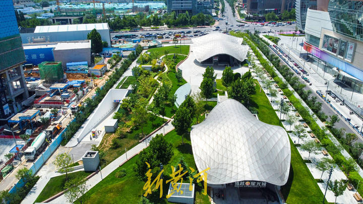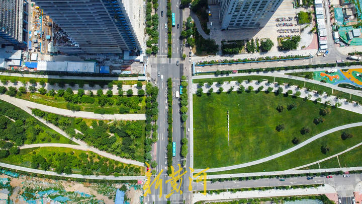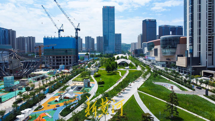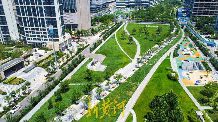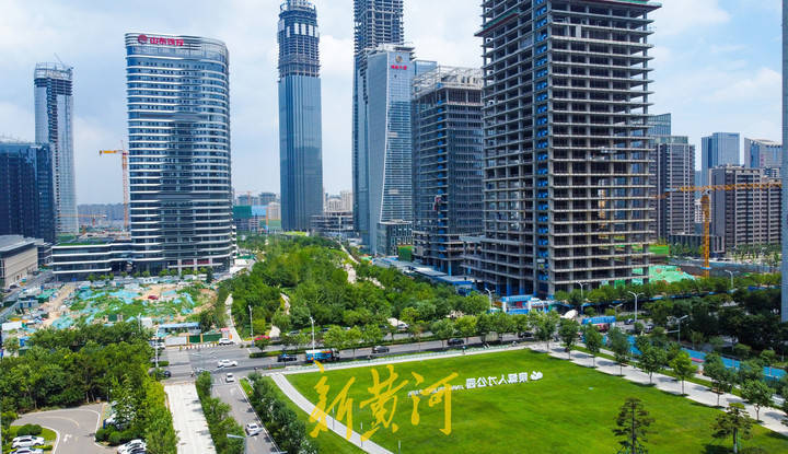 7月4日,在解放东路与经十路之间的绸带公园,大型草坪上竖立起“泉城人才公园”的中英文标识,建成多年的绿地公园有了自己的新名字。济南中央商务区在建设初期,以绸带公园为名称进行设计建设,总占地面积约22公顷,其中绿化面积就占据了约14.76万平方米,各式各样的绿树、花卉在这里随处可见,狭长的公园像一条翠绿色的绸带缠绕在高层建筑之间,更加印证了它“城市绿洲”的美名。