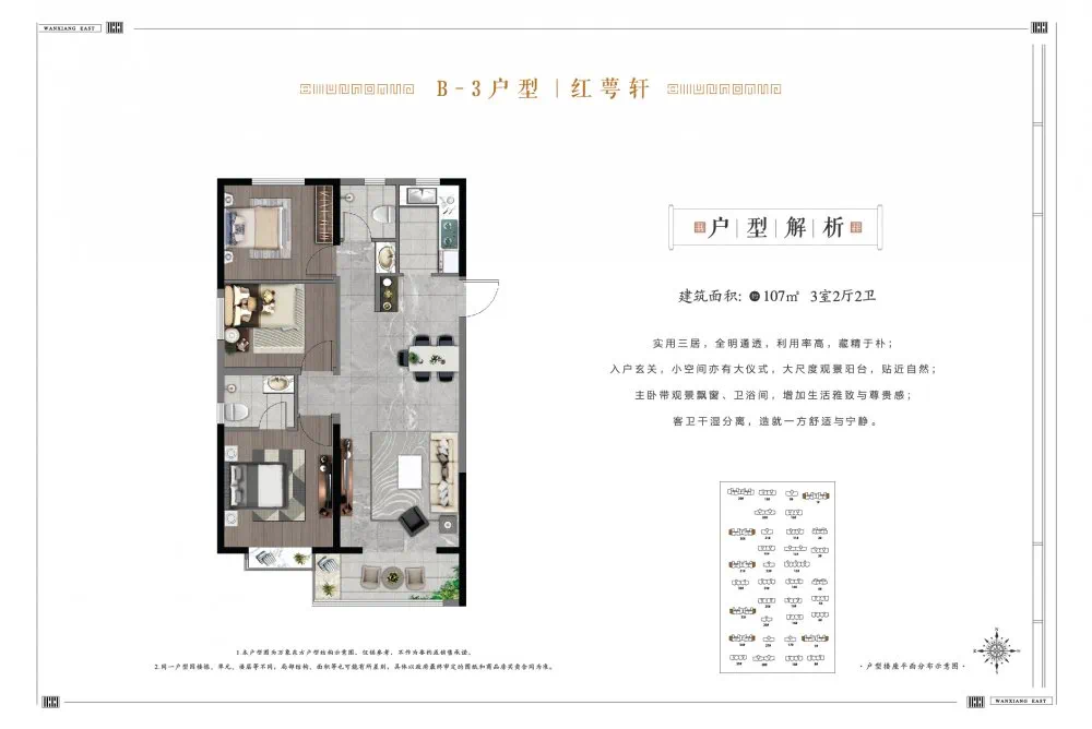 再就是天鸿·万象东方的户型升级,也是一大亮点。在原有爆款户型的基础上,这次所有户型增加了南向卧室的飘窗,阳台设计成270°拐角阳台;全面三室两卫化,100%的三室、90%的户型有两个卫生间;优质南向面宽,有80%的户型是3-4个房间朝阳;35栋楼中有20%的楼栋是10-11层的洋房,让整个小区居住起来更加舒适。