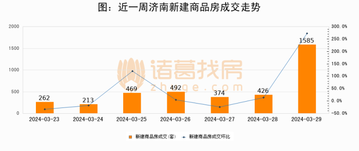 【济南成交日报】03月29日新房成交1585套;涨价房源27套