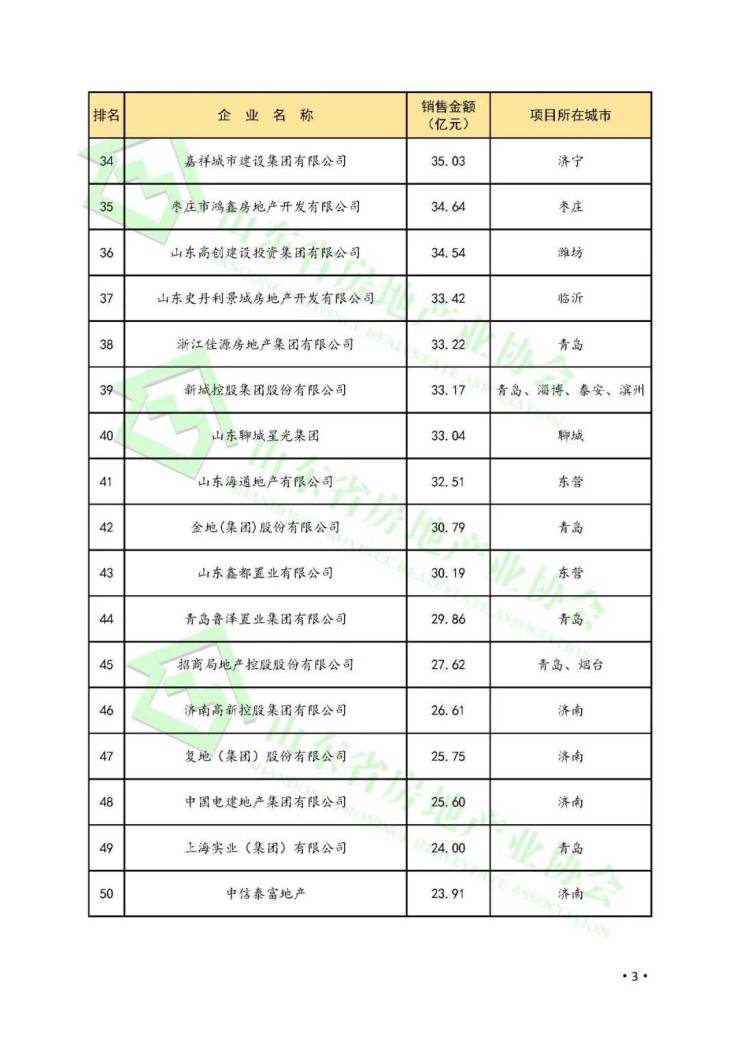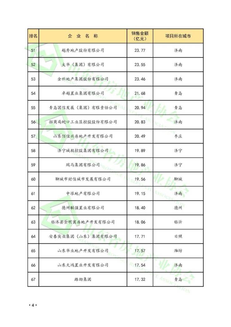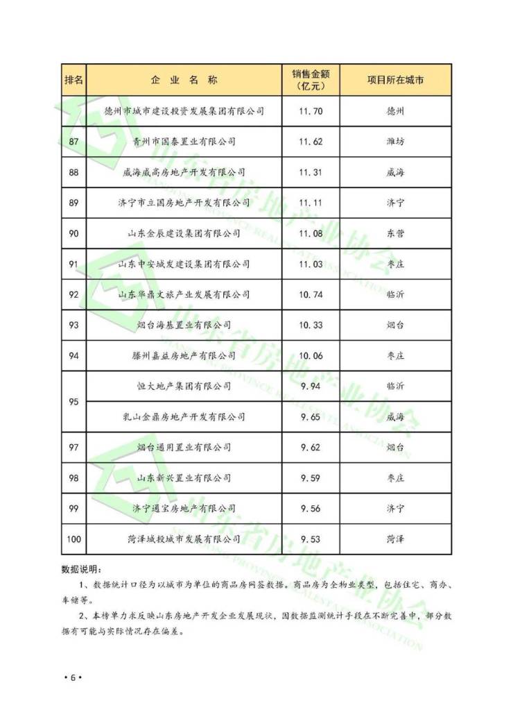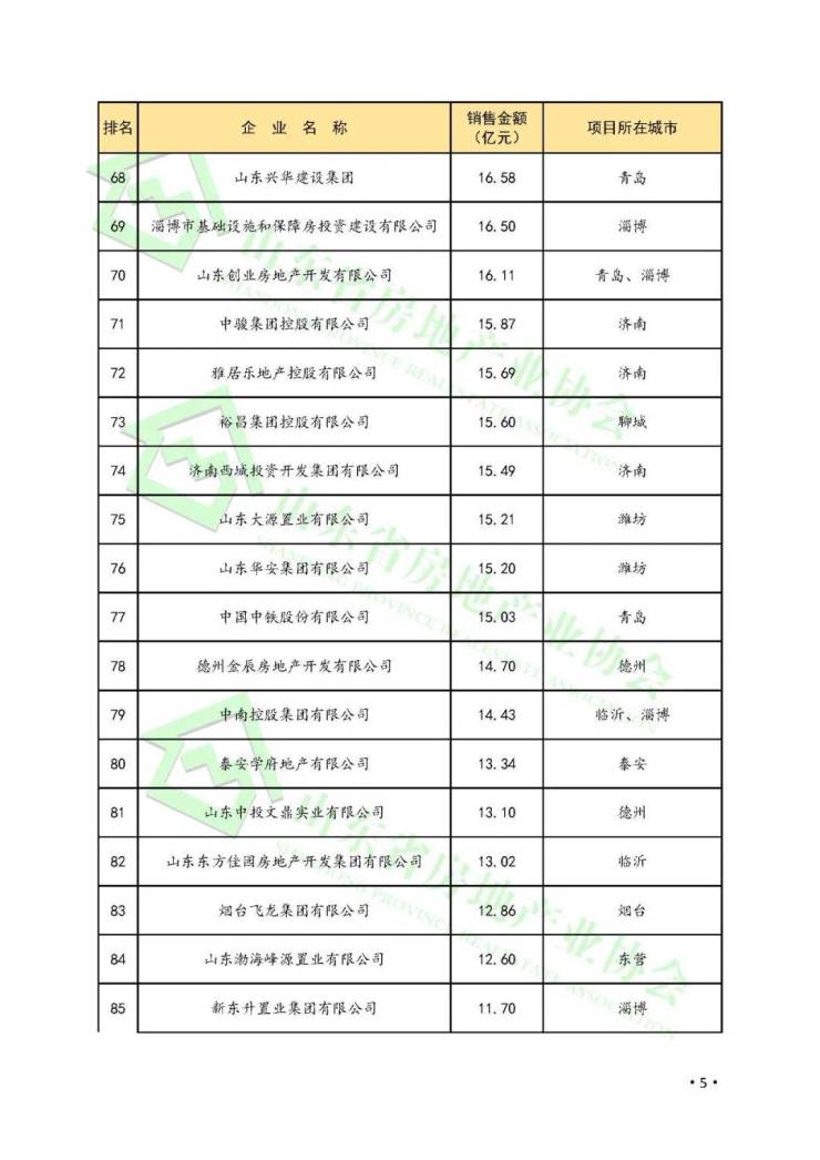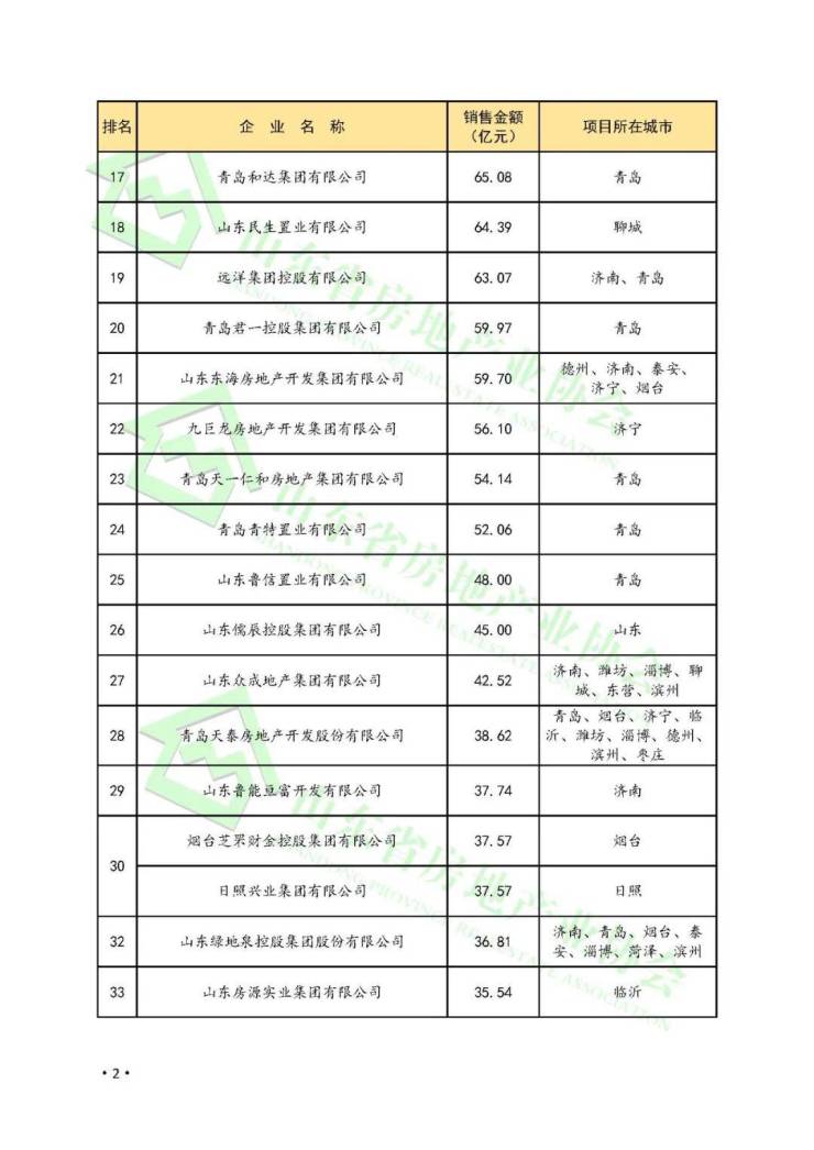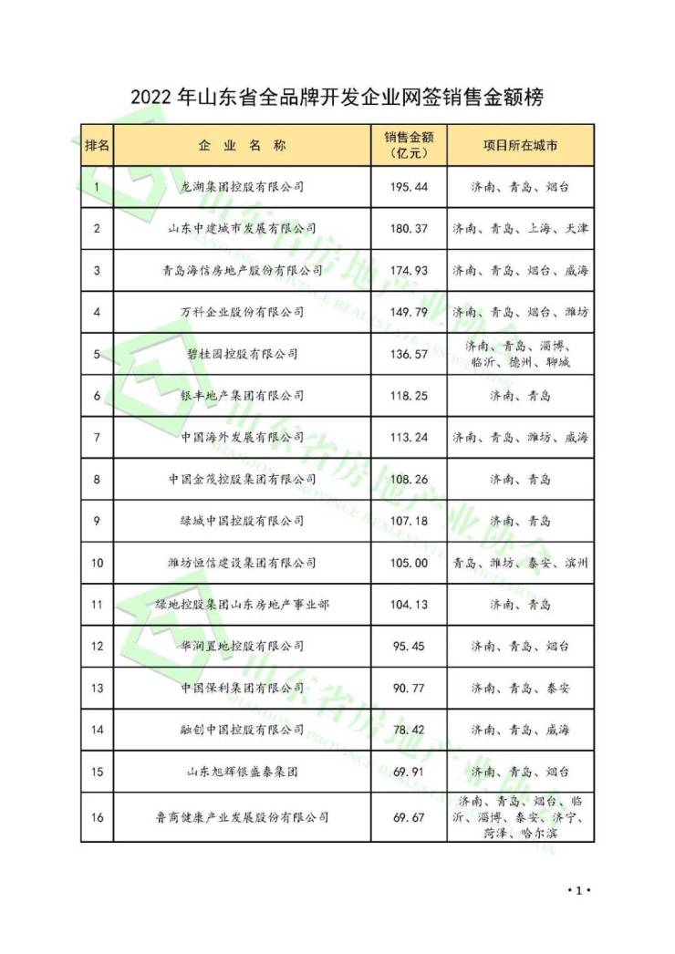 2022年山东省全品牌开发企业网签销售金额榜公布