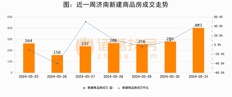 【济南成交日报】05月31日新房成交403套;涨价房源40套