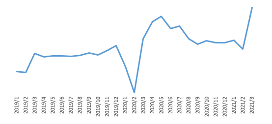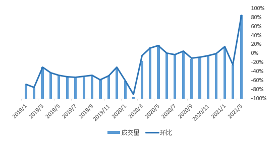 3月市场需求大幅上升。据贝壳找房已售房源数据统计,二手房新增带看客户量呈现上升趋势,环比2021年2月提升幅度较为明显,自2019年以来,新增带看客户量处于较高位上。由于季节性的反弹,3月“小阳春”现象出现,预计2021年4月济南二手房成交量持续增长。