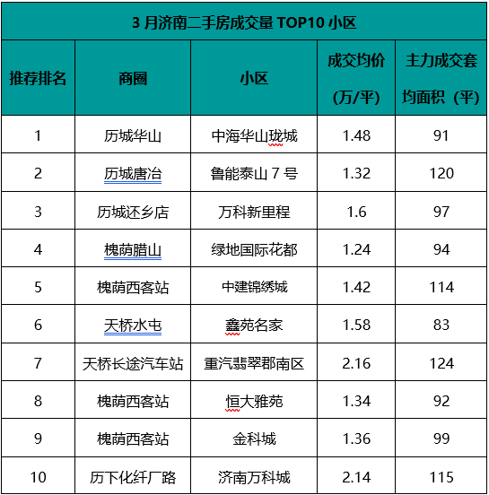 2021年2月排在贝壳找房平台成交量首位的是历城华山商圈的中海华山珑城小区,小区成交均价为1.48万元/平方米,主力成交套均面积为91平方米。