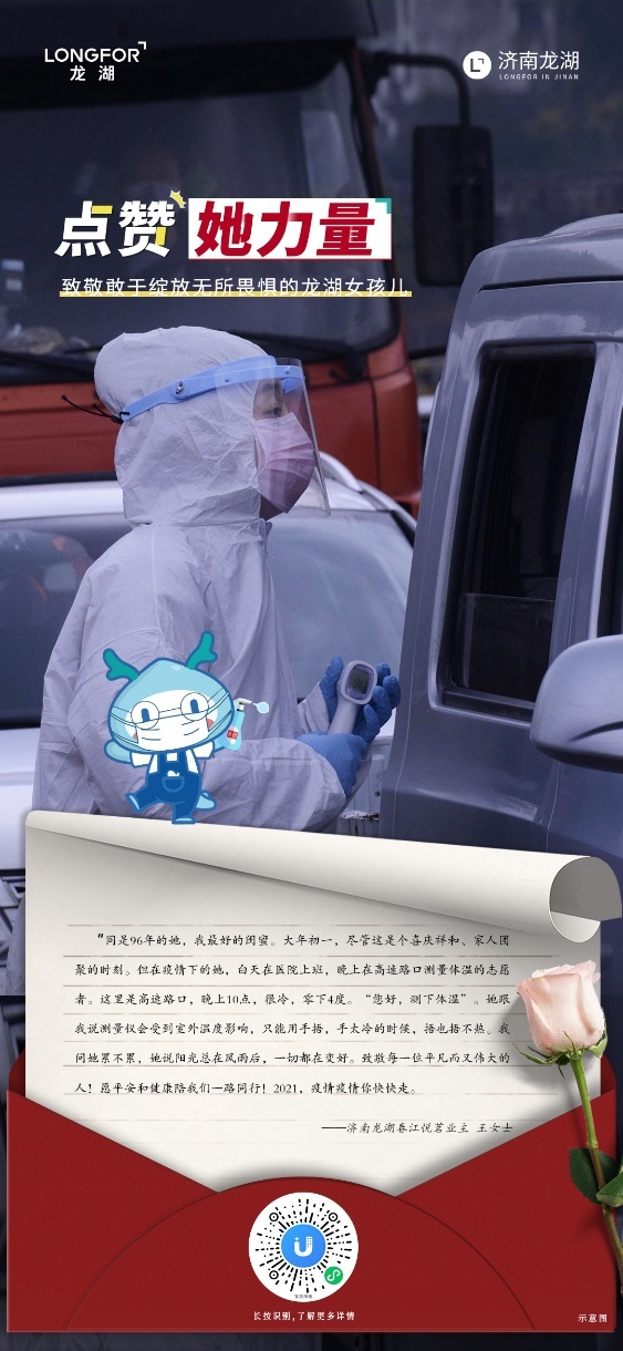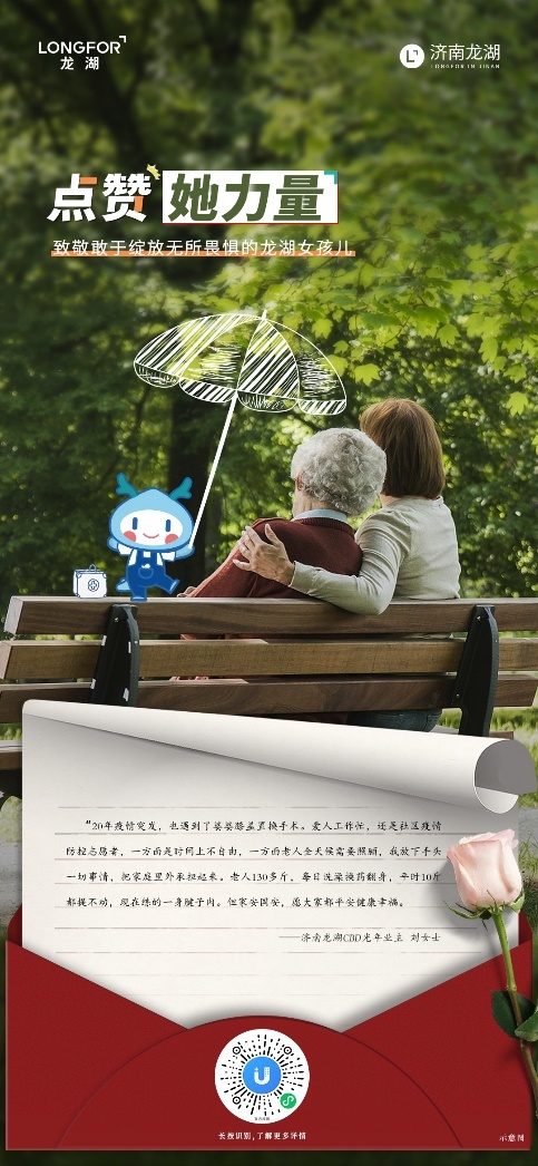 每一年的三八节 都是充满爱与祝福的节日 在经过了2020极不平凡的时光, 今年的三八节,更是异常勇敢 除了鲜花,也该有掌声 济南龙湖智慧服务邀请你 与我们一起放大那些或敢于追梦 或敢于绽放的无所畏惧的龙湖女孩儿 破浪出圈 她力量 1 她是母亲,是妻子,是女儿,她是温柔的,但她亦可是强悍的,撑起了守护
