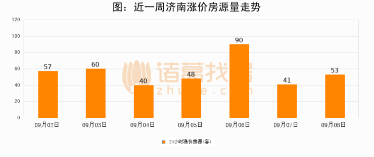 根据诸葛找房数据显示,济南24小时涨价房源量为53套,较09月07日增加12套,环比上涨29.3%。与此同时,涨价房源占比小幅扩大,业主信心有所提升。