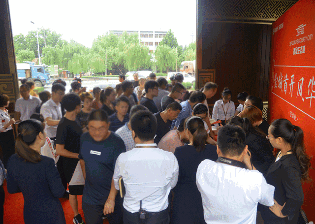 早上8点左右,众多客户及嘉宾便陆续来到现场,在工作人员有条不紊的安排中有序签到、就座,等待开盘的正式开始。