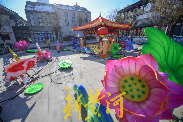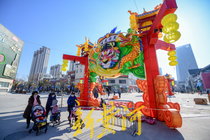 12月27日,在西客站片区的印象济南泉世界,十余组大型花灯造型基本安装完成,施工人员开始安装电缆线路,为花灯亮灯做最后的准备。据了解,安装的花灯以生肖虎造型为主,喷泉广场四个方向分别安装了红色中式牌坊,中央悬挂着“虎虎生威”的造型,在泉水石上流景观处,安装有千佛山、趵突泉等济南名胜为主题的花灯,沿街树木上还挂上了各种宫灯和荷花灯。花灯会将于2022年元旦正式亮灯,这也是继2017年后,花灯会第二次落户印象济南。