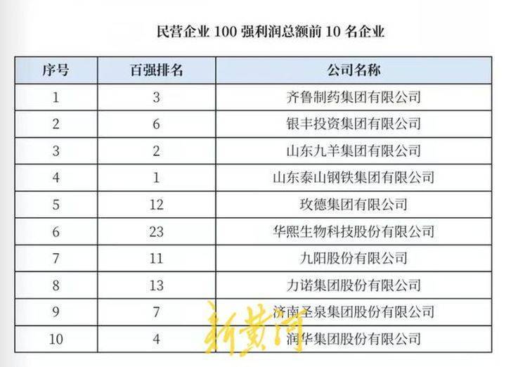 榜单显示,泰山钢铁、九羊集团、齐鲁制药、润华集团、东泰进出口有限公司、银丰投资集团、圣泉集团、泰威冶金材料制造有限公司、山东宝元商贸有限公司、海王医药集团跻身“2022年济南民营企业100强”前十。