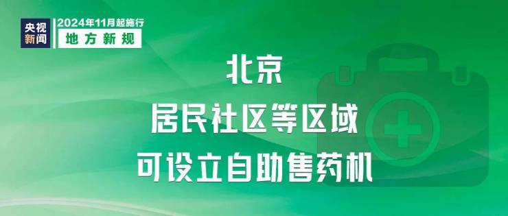 《北京市药品零售企业设置自助售(取)药机管理暂行规定》11月1日起执行,明确药品零售连锁企业可以依托下辖连锁门店在大型交通枢纽、旅游景区、大型购物中心、酒店宾馆、居民社区、社区医疗机构、乡镇(村)卫生服务中心等区域设立自助售药机。