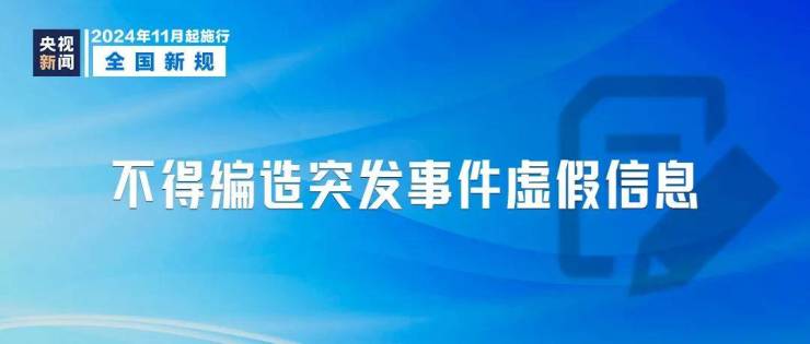 新修订的《中华人民共和国突发事件应对法》11月1日起施行,明确任何单位和个人不得编造、故意传播有关突发事件的虚假信息。国家在突发事件应对工作中,应当对未成年人、老年人、残疾人、孕产期和哺乳期的妇女等群体给予特殊、优先保护。