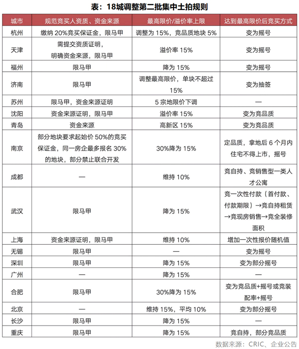 自8月份以来,针对首轮集中供地出现的热点城市地价高企、房企恐慌性抢地等问题,包括北上广深在内的18个城市相继发布了第二批住宅用地集中出让公告,土拍规则较首批均有所调整。