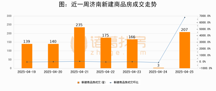 【济南成交日报】04月25日新房成交207套;涨价房源80套