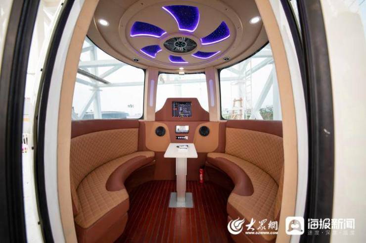 泉城之光摩天轮项目总经理徐静前告诉记者,摩天轮于7月9日正式对外营业,客流量较大。整体配备了38个新式普通豪华轿仓,4个新式超豪华轿仓。“豪华轿仓配备了劳斯莱斯星空顶,还有奔驰出风口,空中KTV,JBL音响等等,可以说是国内最豪华的轿仓了。”