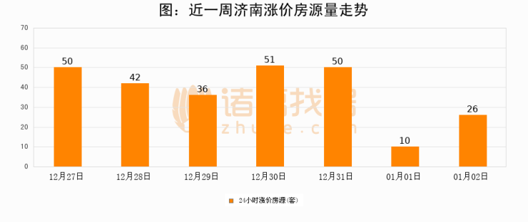 根据诸葛找房数据显示,济南24小时涨价房源量为26套,较01月01日增加16套,环比上涨160%。与此同时,涨价房源占比小幅扩大,业主信心有所提升。