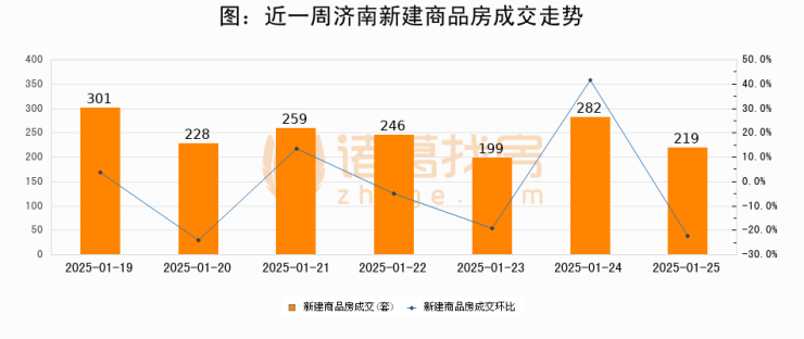 【济南成交日报】01月25日新房成交219套;涨价房源2套