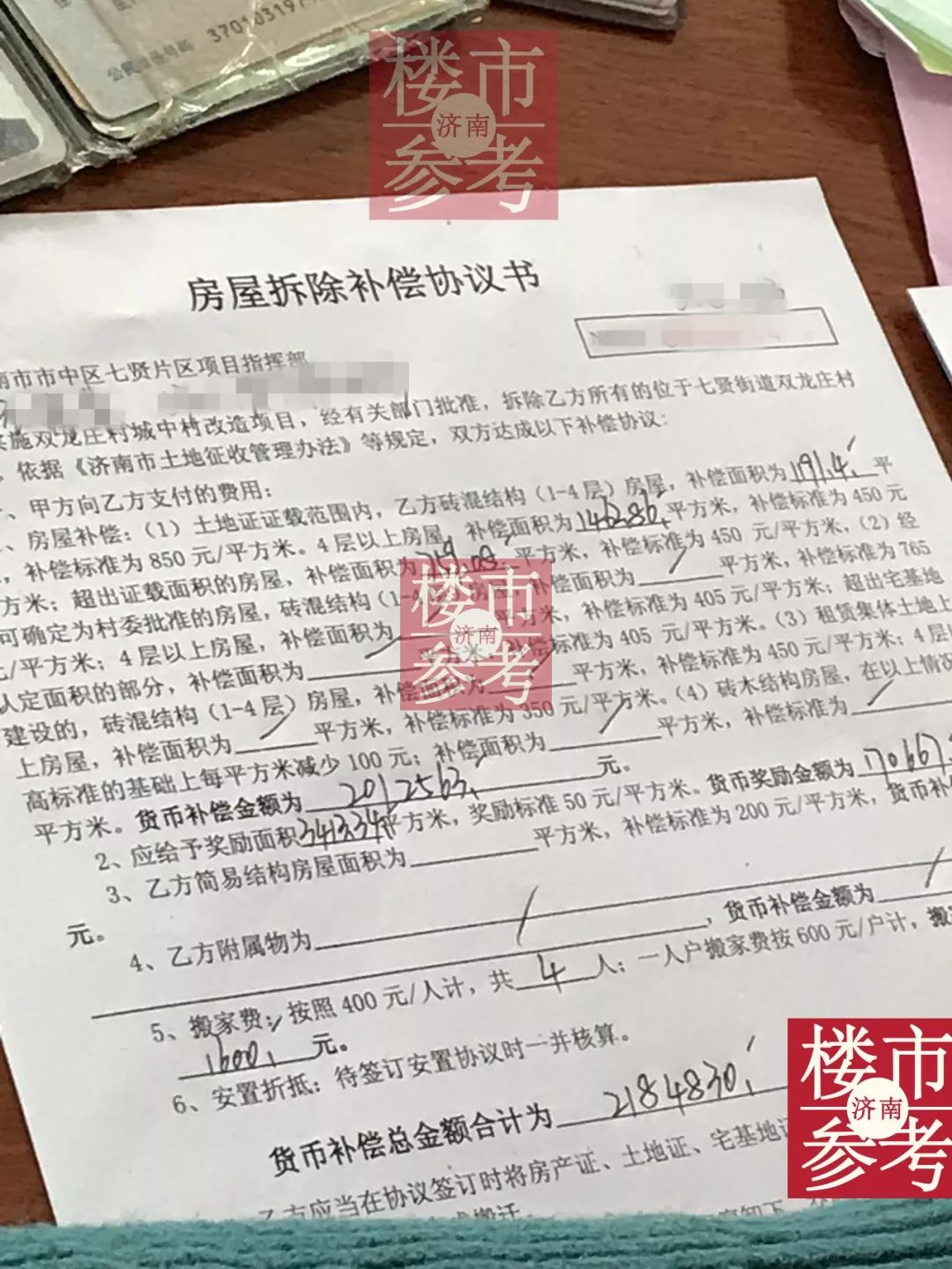 值得注意的是,双龙庄普遍都是三四层小楼,每家每户的拆迁面积很大!以下面这户人家的房屋拆迁补偿协议书为例: