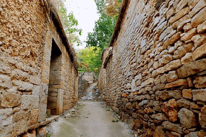 村中存有很多的石屋、石墙、石碾、老物件等,最有名的要数小樱桃和千年柘树。村中悬崖边,一棵有着千年树龄的柘树,顽强生长,如蟠龙一般,风骨犹存。