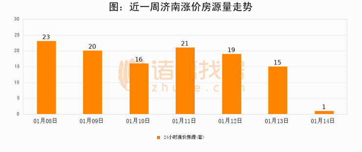 根据诸葛找房数据显示,济南24小时涨价房源量为1套,较01月13日减少14套,环比下降93.3%。与此同时,涨价房源占比小幅回落,对于购房者来说是一个入市窗口期,购房者可抓住时机入市。