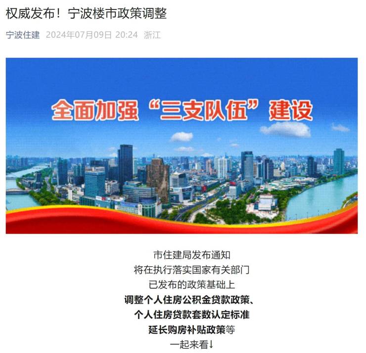 中房网讯 (苏晓/文)7月9日,宁波市住建局发布通知,将在执行落实国家有关部门已发布的政策基础上调整个人住房公积金贷款政策、个人住房贷款套数认定标准、延长购房补贴政策等。