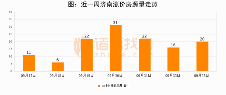 根据诸葛找房数据显示,济南24小时涨价房源量为20套,较09月22日增加4套,环比上涨25%。与此同时,涨价房源占比小幅扩大,业主信心有所提升。