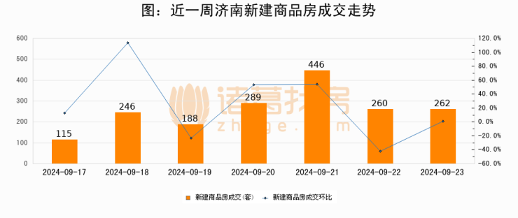 【济南成交日报】09月23日新房成交262套;涨价房源20套