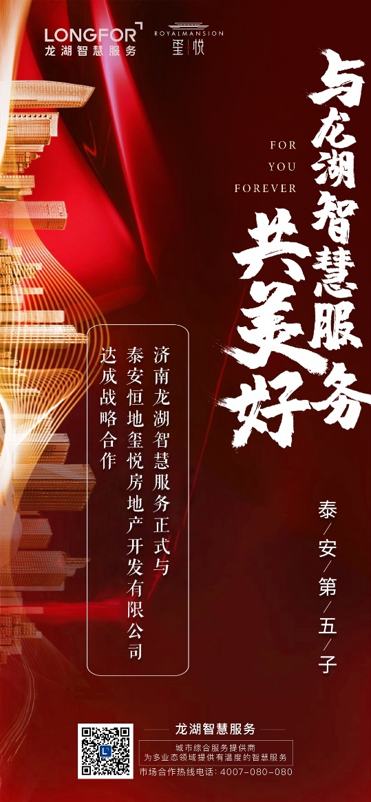 4.23日,济南龙湖智慧服务正式与泰安恒地玺悦房地产开发有限公司达成战略合作,这已是在泰安拓展的第五个项目,2021年以来,济南龙湖智慧服务加快市场外拓进程,为更多人带去“满意+惊喜”的龙湖式幸福。
