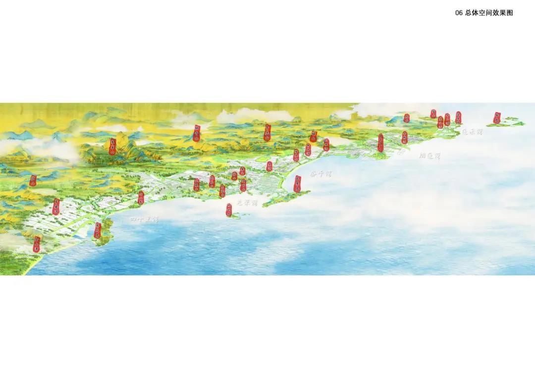 项目位于日照市山海天旅游区,山海景观相拥,民俗底蕴丰厚。城市设计立足打造滨海渔村渔业主题片区,塑造滨海特色空间和人文风貌。理念及创新点:一是生态优先、山海相融。划定山海生态红线,拉结生态网络,塑造连山融海的景观绿道与显山露海的视觉廊道,构建通山达海的慢行体系;二是有机更新、特色为魂。结合渔业生产相关的渔港、船坞、养殖、晒盐等传统空间,开展系统性的更新研究和详细设计,保护渔业遗存,凸显滨海特色;三是新旧融合、产业引领。传统渔村渔港与特色小镇有机结合,扩展多元旅游业态,塑造产城一体的活力片区;四是公众参与、有序实施。引导村民自建更新,实现共益、共识、共商、共担、共建、共治的社区更新;对新建区域提出精细化的布局、高度、风格、色彩等管控要求,确保实施效果。
