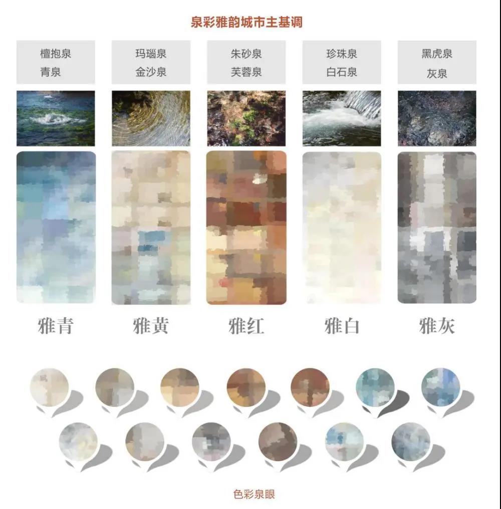 《济南城市色彩通用导则》以“泉彩雅韵”为理念,通过营造“素城彩市”特色,营造“湖光山色、淡妆浓抹”城市色彩愿景主旋律。《导则》赋予泉水一种色彩——“泉彩”,打造中央商务区、古城片区等中心泉眼。从空间美学角度,提出城市建筑、道路空间、城市家具与广告等色彩的管控规则;以图文结合、“正面引导+负面清单”相结合的方式,对城市节点、街道、建筑的色彩表现提出对策。《导则》实行分级、分区管控,提升色彩规划管控体系精细度。分级管控:总体设计奠定色彩基调、确定风貌分区和基本管控策略等;详细设计明确片区色彩定位、主辅调色控制要求等。分区管控:重点地区明确管控要素和要求,一般地区主要弹性引导。