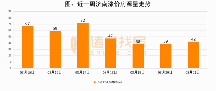 根据诸葛找房数据显示,济南24小时涨价房源量为42套,较08月20日增加3套,环比上涨7.7%。与此同时,涨价房源占比小幅扩大,业主信心有所提升。